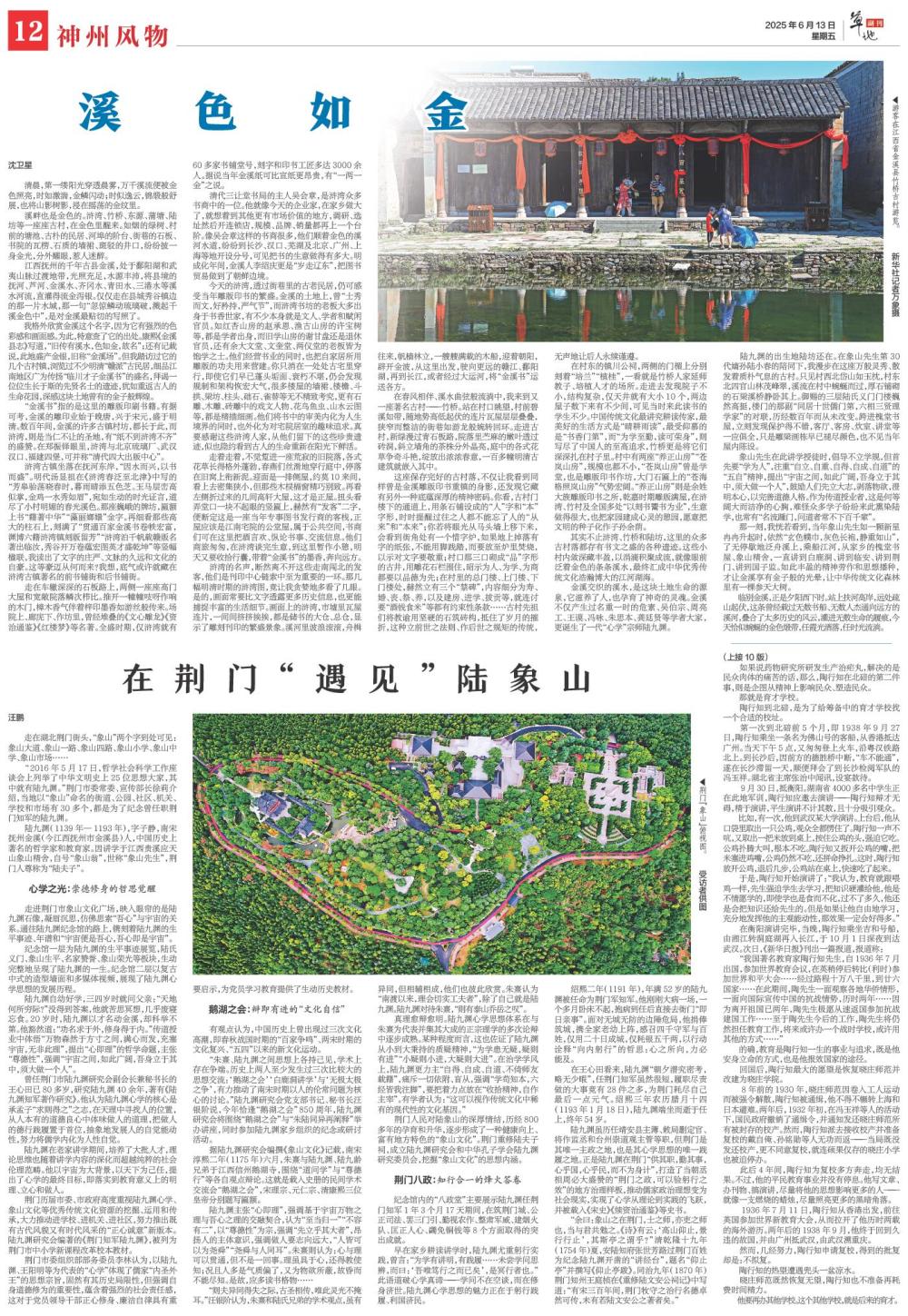“2016年5月17日,哲学社会科学工作座谈会上列举了中华文明史上25位思想大家,其中就有陆九渊。”荆门市委常委、宣传部长徐莉介绍,当地以“象山”命名的街道、公园、社区、机关、学校和市场有30多个,都是为了纪念曾任职荆门知军的陆九渊。