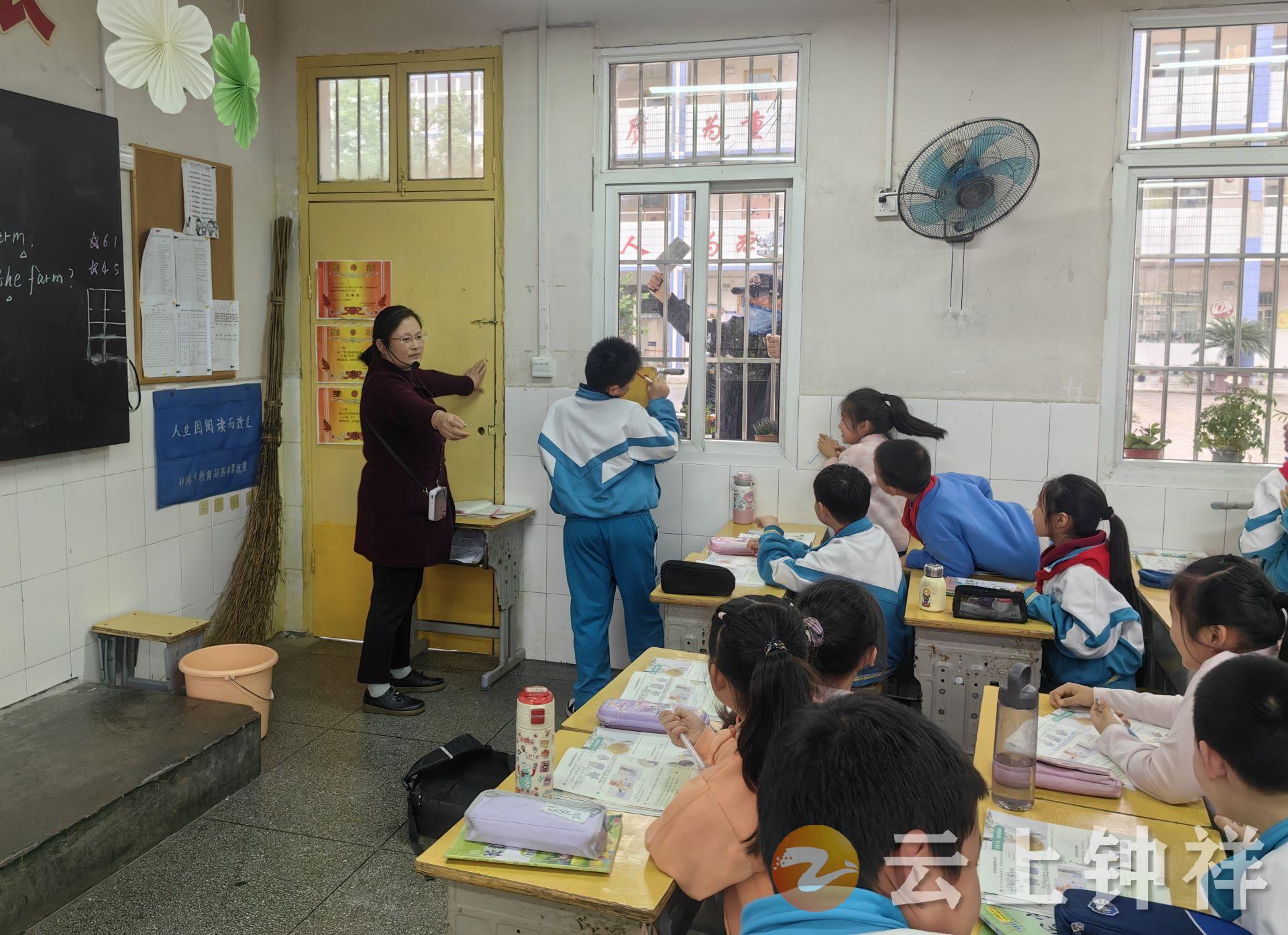 演练伊始,一名教职工扮演的“暴徒”持械欲强行闯进校园,学校安保人员立即启动“一键报警”系统,手持防暴盾牌、钢叉快速上前阻拦、周旋。与此同时,校园广播骤然响起“暴力入侵警报”。各班级教师反应迅速,即刻关闭教室门窗,组织学生用课桌加固抵紧门体,同步引导学生快速疏散至墙角、课桌下等安全区域,瞬间完成教室应急防护。随后,校巡逻队与安保人员默契配合将“暴徒”成功制服,整个处置过程紧张高效、衔接有序。