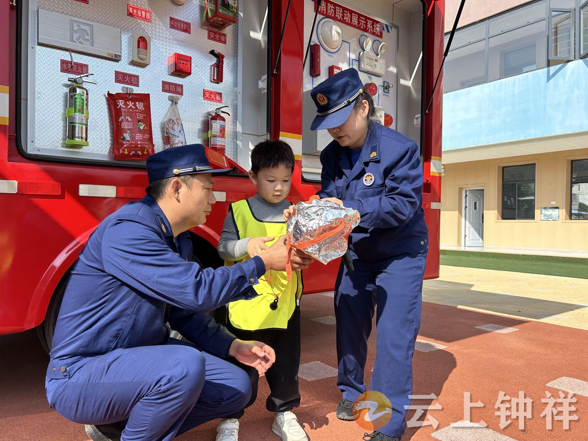 为了让抽象知识更直观,消防人员现场展示灭火器、逃生面罩等专业器材并演示使用方法,还设置“零距离”接触环节,引导孩子们触摸、观察、询问,加深对消防装备的认知。