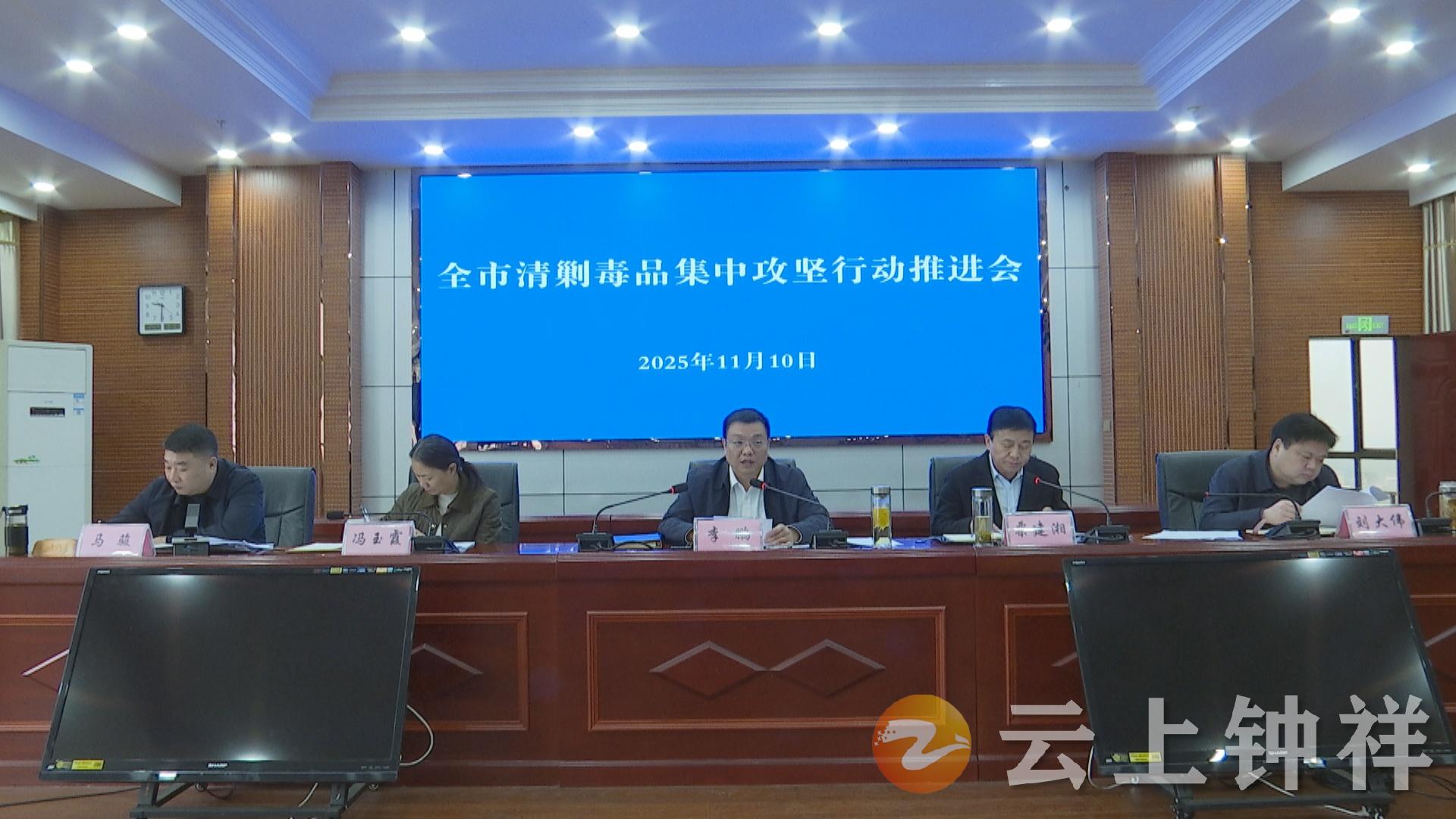 11月10日,钟祥市召开清剿毒品集中攻坚行动推进会。市领导李鹏、粟建湘、冯玉霞、刘大伟、马骏出席会议。