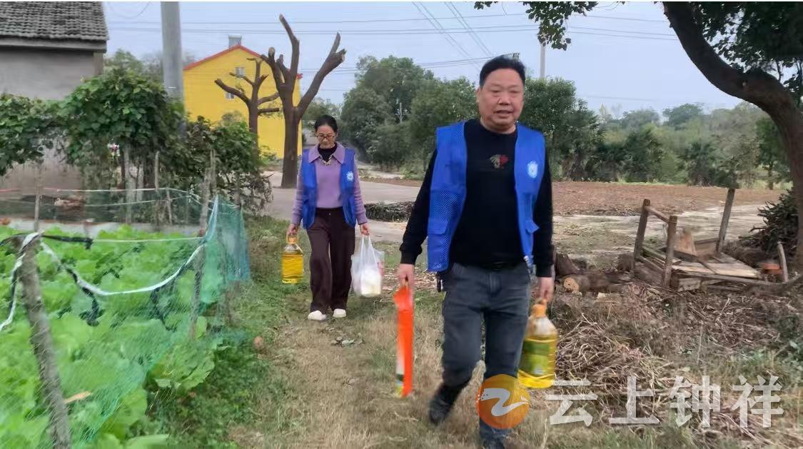 近日,冷水镇乔坡村网格站长陶德兵与网格员汪艳华携带肉、菜、米、油等生活物资,走访85岁高龄空巢老人苏显旺,以实际行动传递关怀,用网格服务温暖人心。