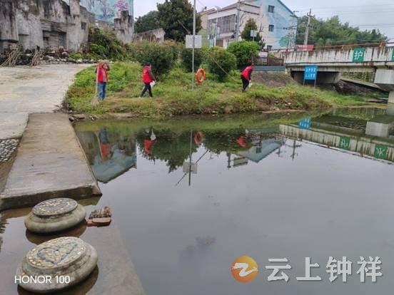 行动前,村级河湖长带领参与人员沿河道巡查,明确清理重点区域与任务分工,确保整治有序推进。活动中,志愿者们手持铁钳、垃圾袋等工具,分工协作打捞水面漂浮的塑料垃圾、枯枝败叶,同步清理河岸两侧的生活垃圾与杂草杂物,对河道沿岸卫生死角进行彻底整治。经过一番辛勤劳作,河道水面恢复洁净,河岸环境焕然一新。