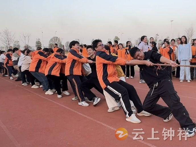 此外,初中部单独开展的拔河比赛成为运动会的一大亮点。比赛现场,参赛队员们紧握长绳、脚蹬地面,使出浑身解数奋力拼搏。场外,啦啦队员们呐喊助威、呼声震天,将比赛气氛推向一个又一个高潮。每一场较量都充满了力量与坚持,充分展现了初中部学子顽强拼搏的精神风貌。