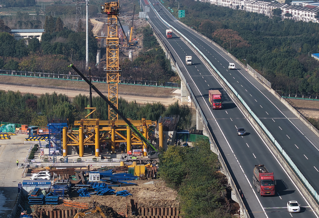 汉宜高速改扩建荆州拍马创业路段建设现场。梅闻 摄