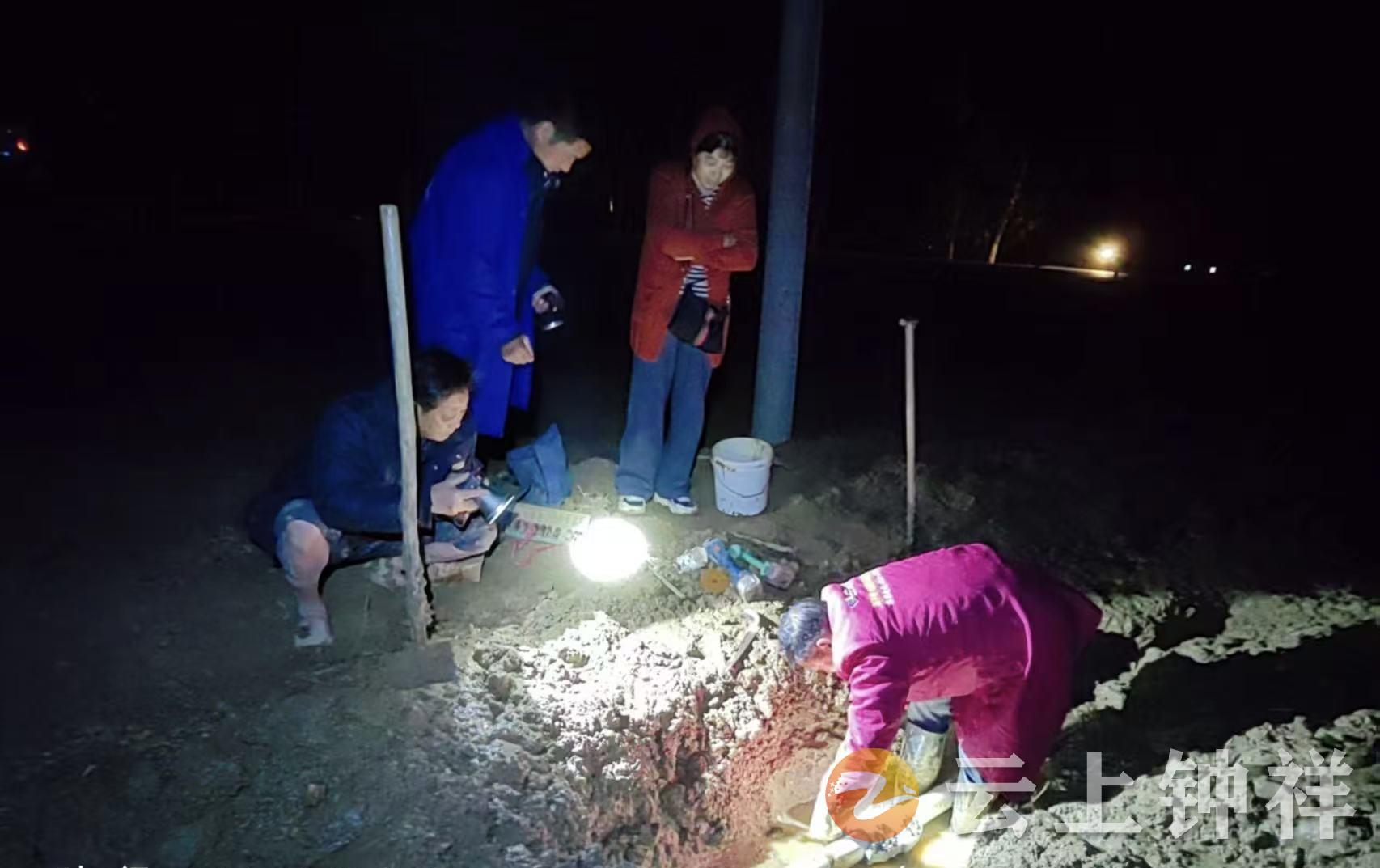 维修队伍抵达后,金永平率先在麦田开辟作业通道,协助清理积水淤泥。维修师傅们不顾夜色湿冷,连夜开展切割破损管道、对接新管、紧固配件等作业。金永平全程坚守,递工具、守安全、实时反馈进度。经过3个多小时的奋战,于深夜时分成功修复主破损处,漏水得到控制。不料试压时发现一处隐性渗漏,需次日更换专用配件。