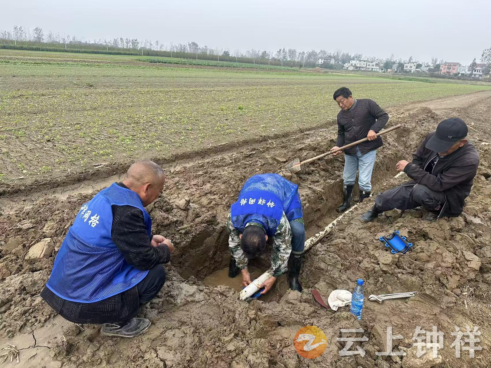 当时天色已暗,金永平携工具赶到现场时,麦田里积水漫延,不仅导致三、四网格供水中断,还可能浸泡周边油菜田。他迅速排查发现,管道破裂口较大,且夜间视线差、田间泥泞,抢修难度极大。当即,他向村“两委”和镇水利站上报,联系专业维修队,同时在网格微信群发布停水通知,说明情况并安抚村民。