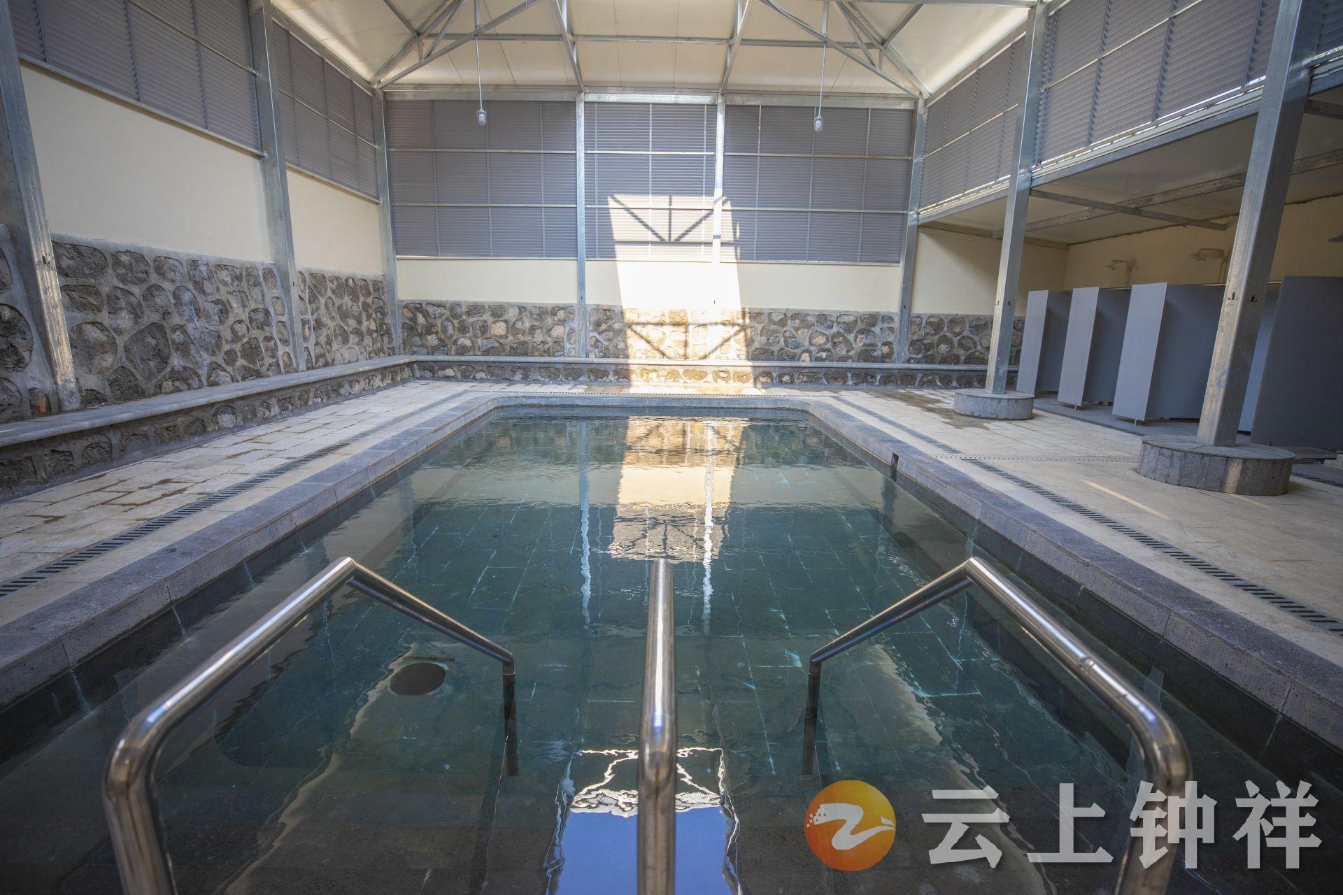 施工人员们顶着盛夏的酷暑,加班加点赶进度,将原来的沙石池底更换为火山石地板,新建了独立淋浴间与温泉顶棚,对危墙和溢洪道进行了浆砌石护坡。工程不仅补齐了过往的设施短板,更着眼长远进行了规模扩建——昔日仅2000多平方米的简陋汤池,如今已拓展为涵盖男女浴池、停车场、卫生间及公共服务场所的综合性空间,总占地面积6000多平方米,环境愈发优雅宜人。更贴心的是,针对此前村民在温泉池洗衣造成水质与环境双重污染的问题,改造后专门增设了约100平方米的洗衣池区域,并配套建设净水储水设施,既满足了村民日常洗衣的需求,又从源头守护了温泉浴场的澄澈洁净。此外,可容纳二三十辆车的硬化停车场也同步落成,成为南来北往游客的便捷驿站。