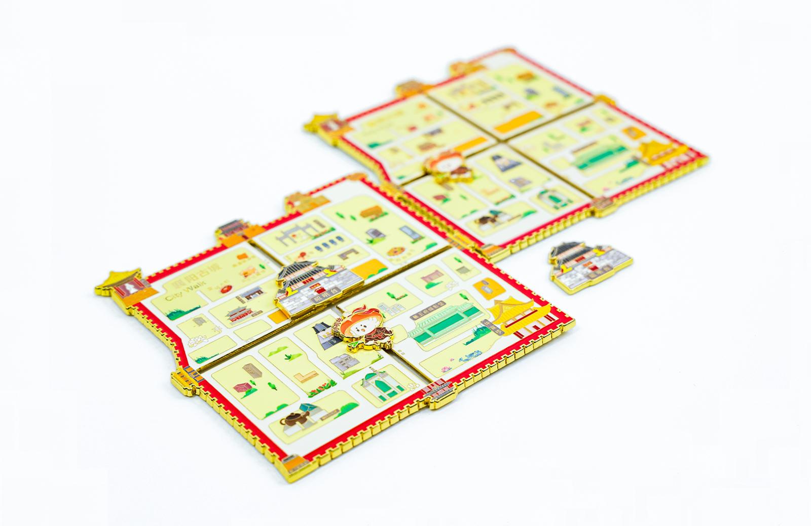 ▲整座襄阳古城被做成了能互动的冰箱贴,Q版小叽咕(襄阳礼物IP形象之一)带了滑轨buff,能在古城版图上,上下左右滑动