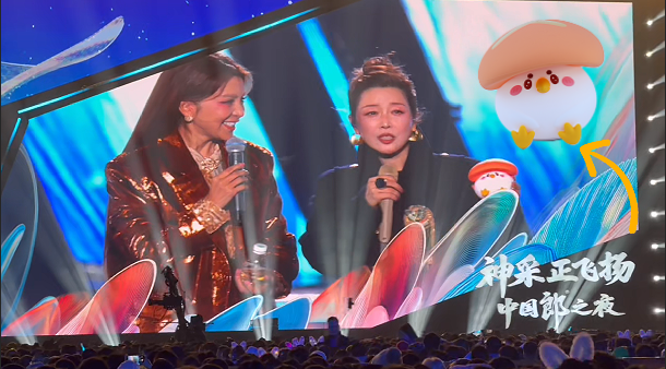 ▲12月21日晚,“相约冬至 侠义襄阳”群星演唱会上,朱迅、孙悦轮番为襄阳城市IP“叽咕”打call