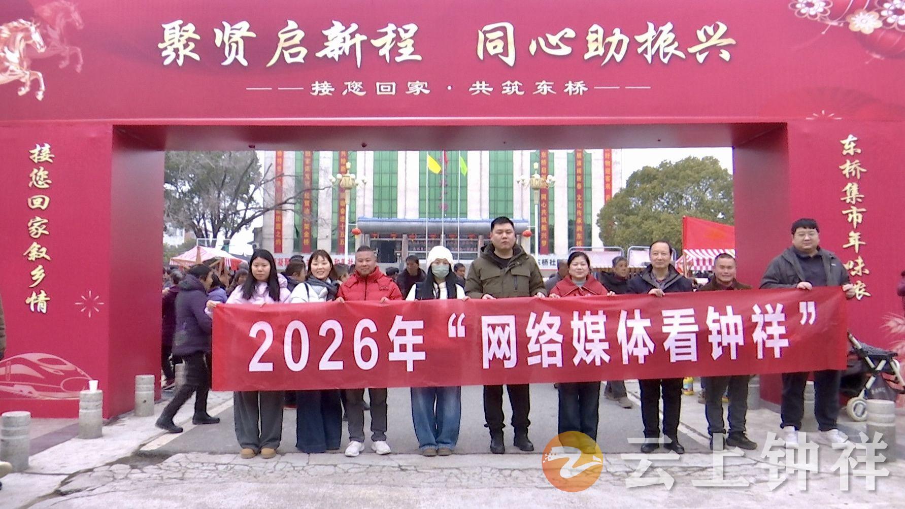 1月28日,由钟祥市委宣传部、市委网信办主办的2026“网络媒体看钟祥”活动走进东桥镇,20余名网络达人齐聚“新春赶大集”现场,用镜头带网友沉浸式“云逛集”、品年味、看非遗。