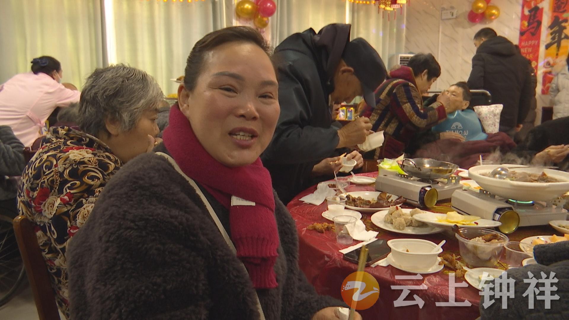 “这是我爸爸第8年在福利院吃团年饭了,现在团年宴是越来越丰富,老爸都不想回去了”,市民伍晓芹高兴地说。