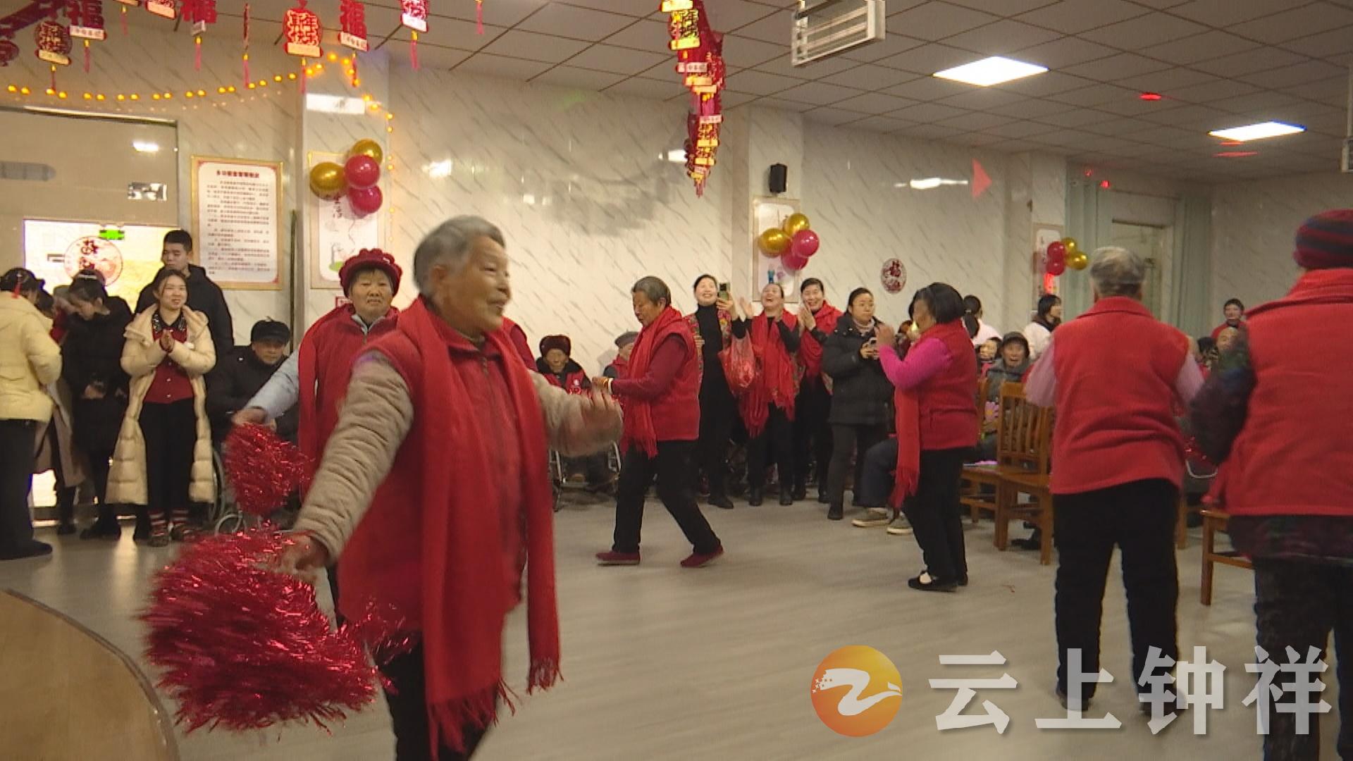 2月10日,钟祥市社会福利院内张灯结彩,喜气洋洋,院内工作人员与老人们欢聚一堂,举行联欢活动,共迎新春佳节。