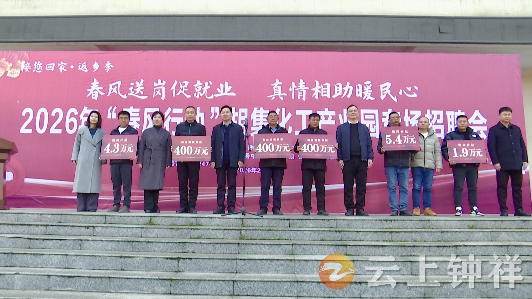 2月12日,钟祥市2026年“春风行动”胡集化工产业园专场招聘活动在胡集文体中心广场火热举办。本次活动以“春风送岗促就业, 真情相助暖民心”为主题,抢抓春节前用工求职“双高峰”,为化工产业发展与重点群体就业搭建精准对接平台。