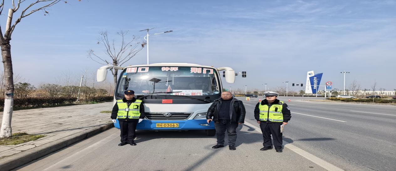 交通运输执法四中队联合公安交管部门在钟祥二桥(东)设置烟花爆竹临时检查点,联合执法,重点查处普通厢式货车、客车违规运输烟花爆竹,保障道路运输安全。