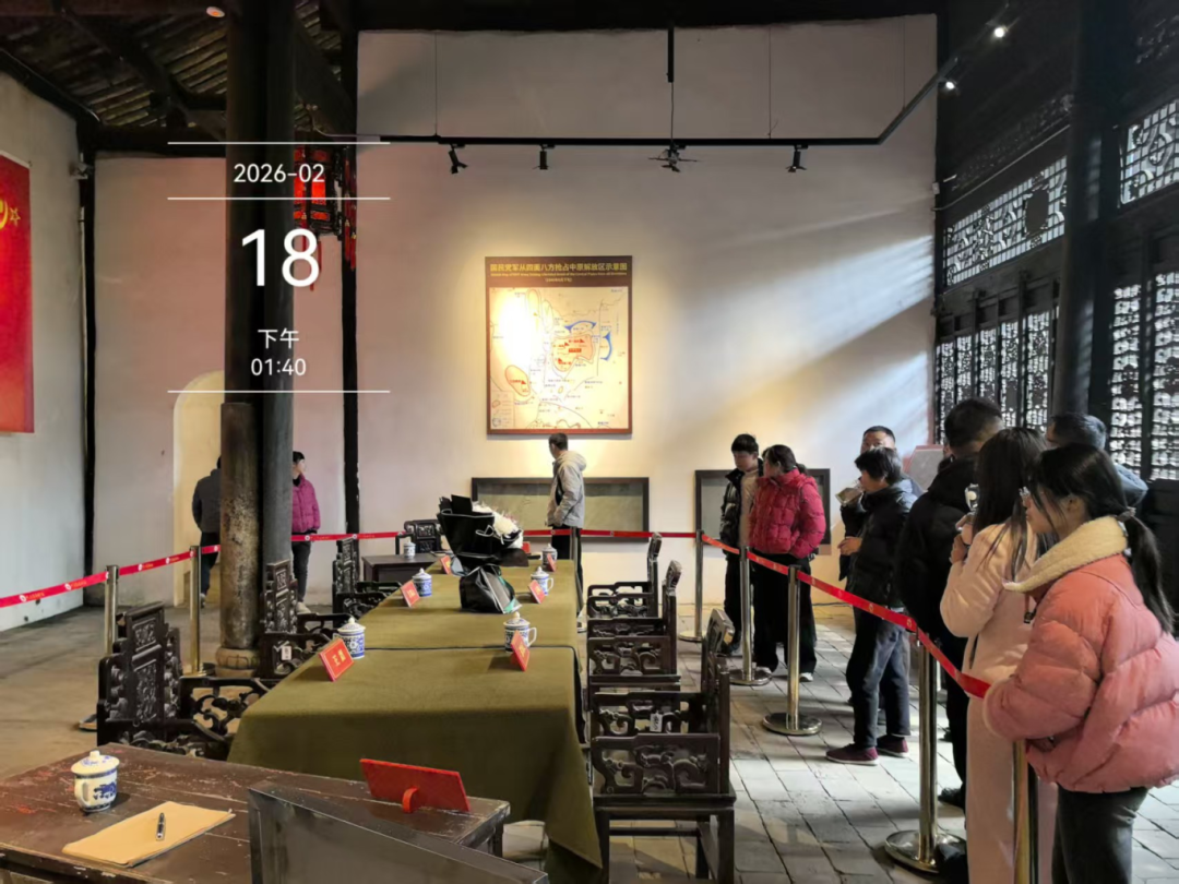 作为打响全国解放战争的中原突围战役的核心发生地,宣化店镇更是成为此次红色旅游的“焦点”,这座正全力打造“鄂北红色旅游第一镇”的小镇,春节期间迎来如织人潮,处处洋溢着“赏年味、学党史、传精神”的浓厚氛围。在中原军区旧址景区,青瓦灰墙间悬挂的红灯笼与革命旧址的古朴风貌交相辉映,游客们有序驻足,在1946年周恩来与美蒋代表谈判旧址、中原军区司令部旧址前,认真聆听历史讲解,凝视珍贵文物,重温那段惊心动魄的突围岁月。不少游客自发驻足沉思、鞠躬致敬,用朴素的方式缅怀革命先辈、致敬峥嵘岁月。