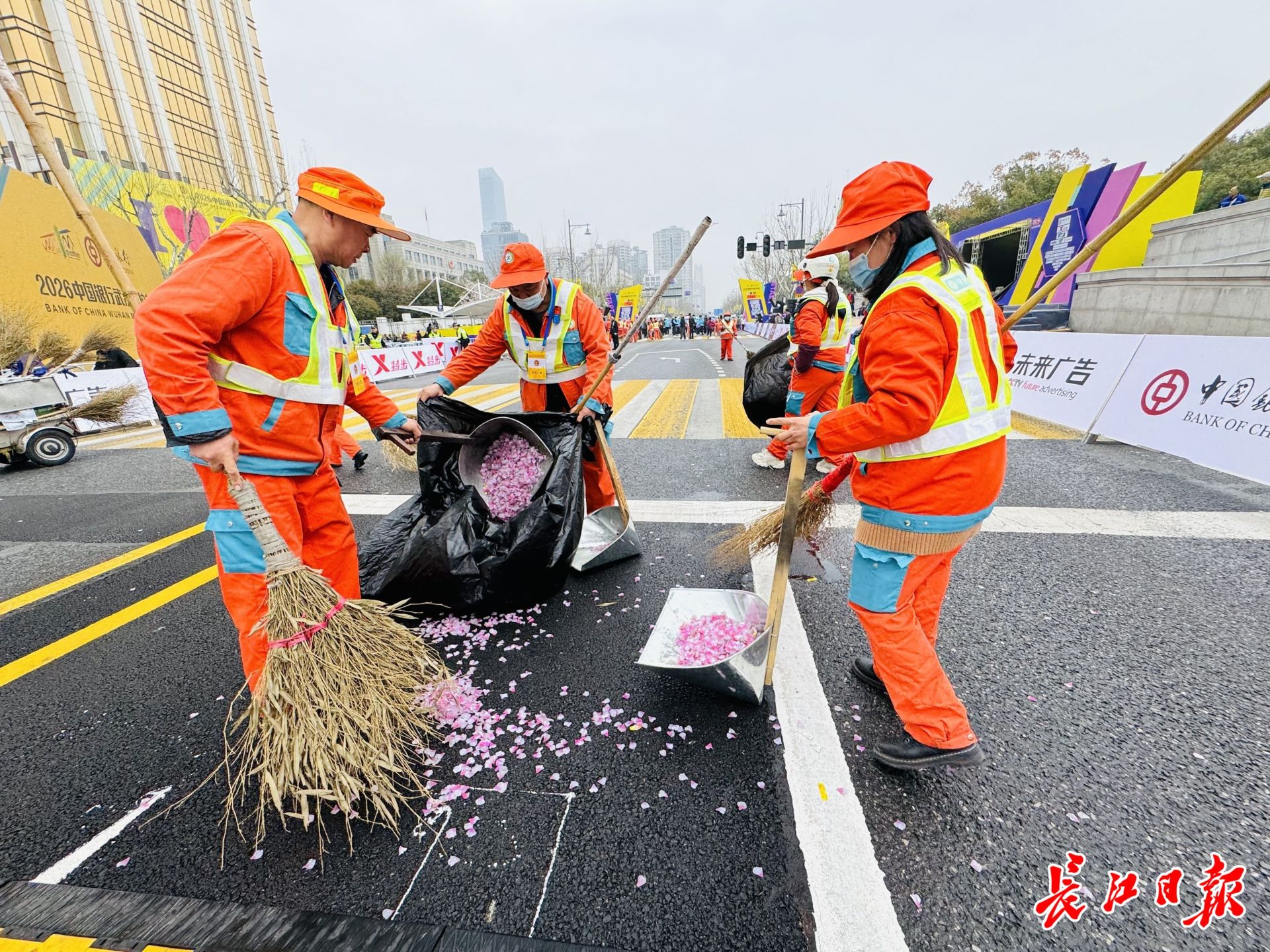 这场“无声接力”贯穿整个赛道。在长江大桥上,武昌区城管执法局大桥清洁队的环卫工人们手持垃圾夹仔细巡查,70余人、14台机械车辆清晨5时30分就已到岗。