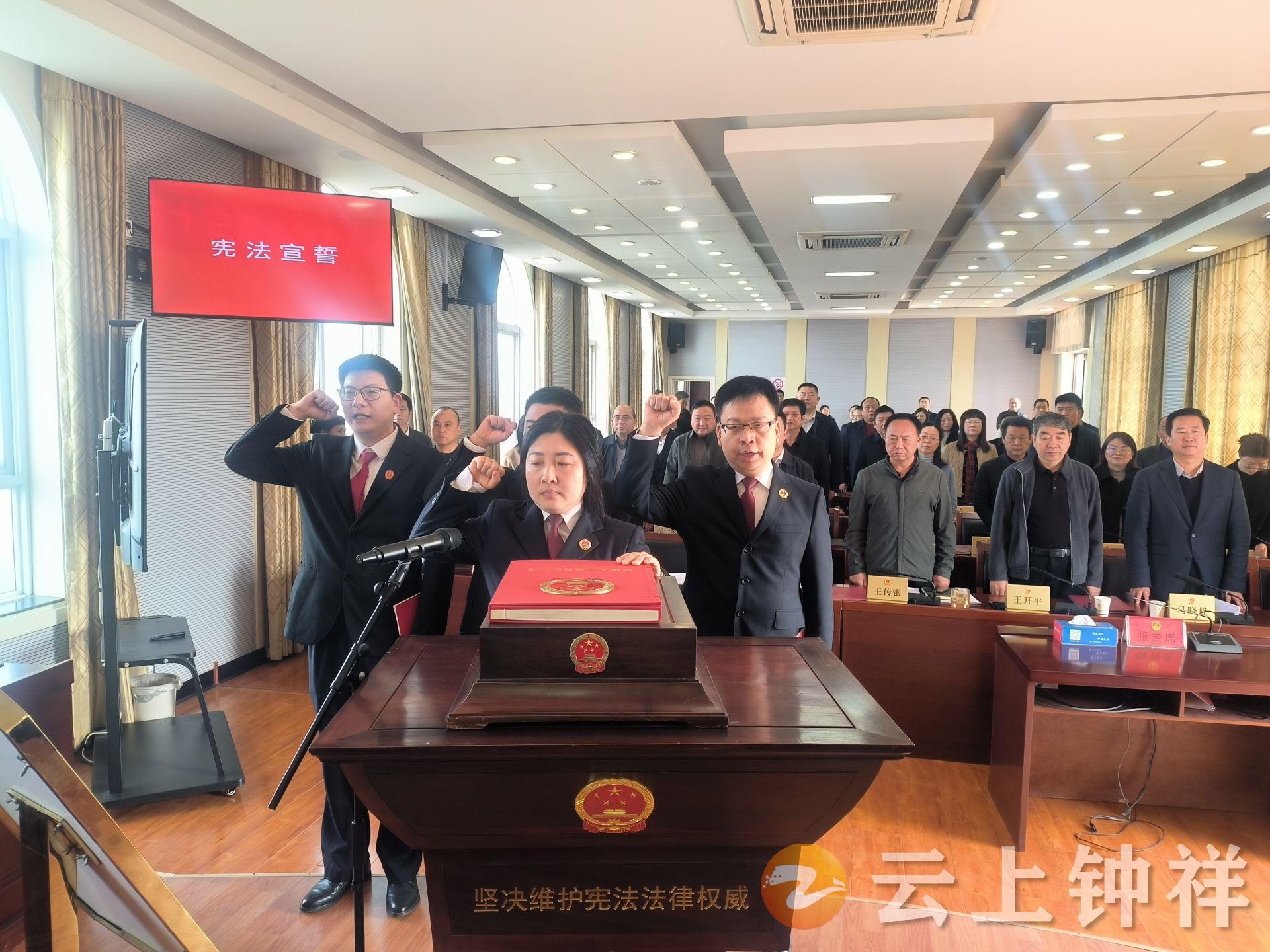 会议还表决通过了有关人事任免事项,决定任命董亚楠为市人民法院胡集人民法庭副庭长,陈上为市人民法院审判员,何小燕、刘飞雄为市人民检察院检察委员会委员,四名新任命人员向宪法进行了宣誓。