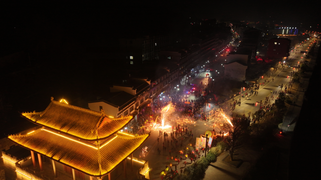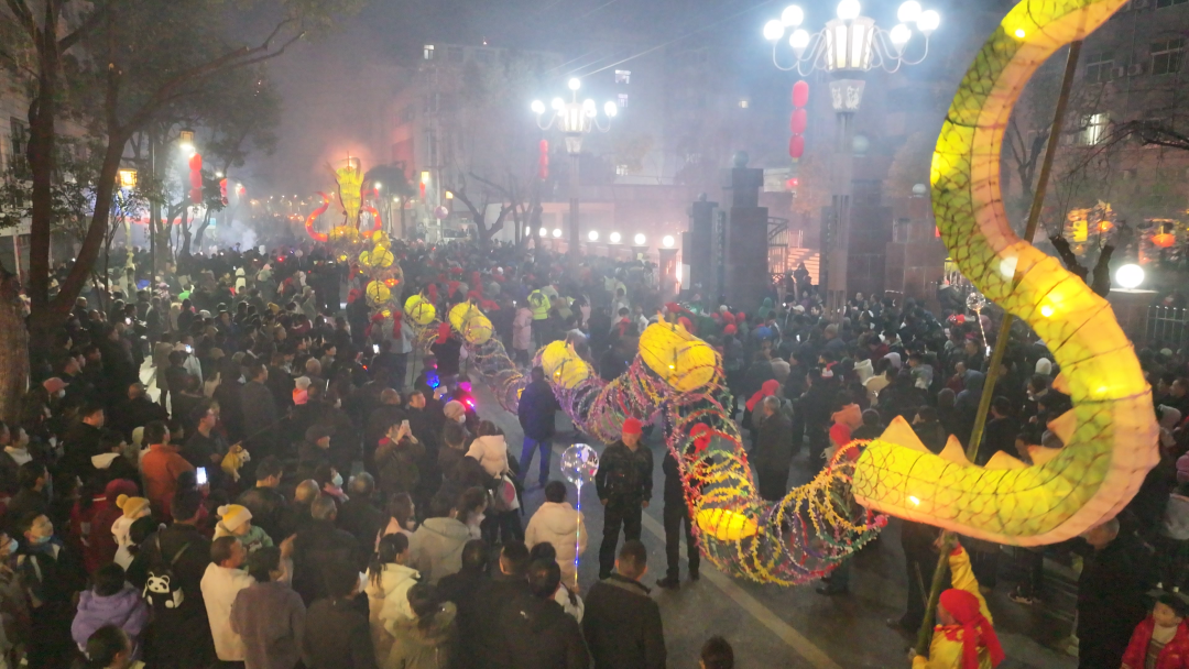 火龙舞盛世、喜庆闹元宵。2月9日(农历正月十二),在十堰市郧西县上津镇的大街小巷,热闹欢腾的“舞火龙”场面吸引鄂豫陕周边上万名群众“逐龙”闹元宵。