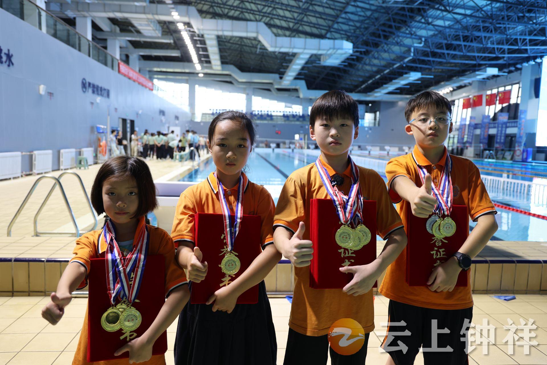 “泳”动钟祥,童趣飞扬。8月13日,钟祥市首届小学生游泳比赛在市龙山游泳馆举行,共有12支代表队130多名游泳小将参加比赛。
