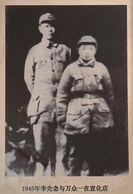 照片上,高大威武的李先念身旁,少年万众一身着宽大军装,英气勃发。
