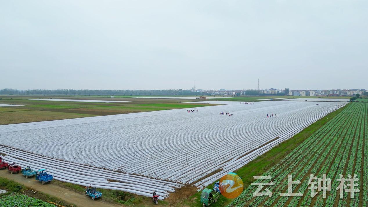 进入十月,钟祥市石牌镇的田野间一派繁忙景象。在宇丰种植家庭农场的连片农田里,村民们正弯腰俯身,仔细地将地膜开孔,引出嫩绿的菜苗。一眼望去,广袤田地仿佛披上了一层“银装”,成为秋播生产中一道独特的风景。