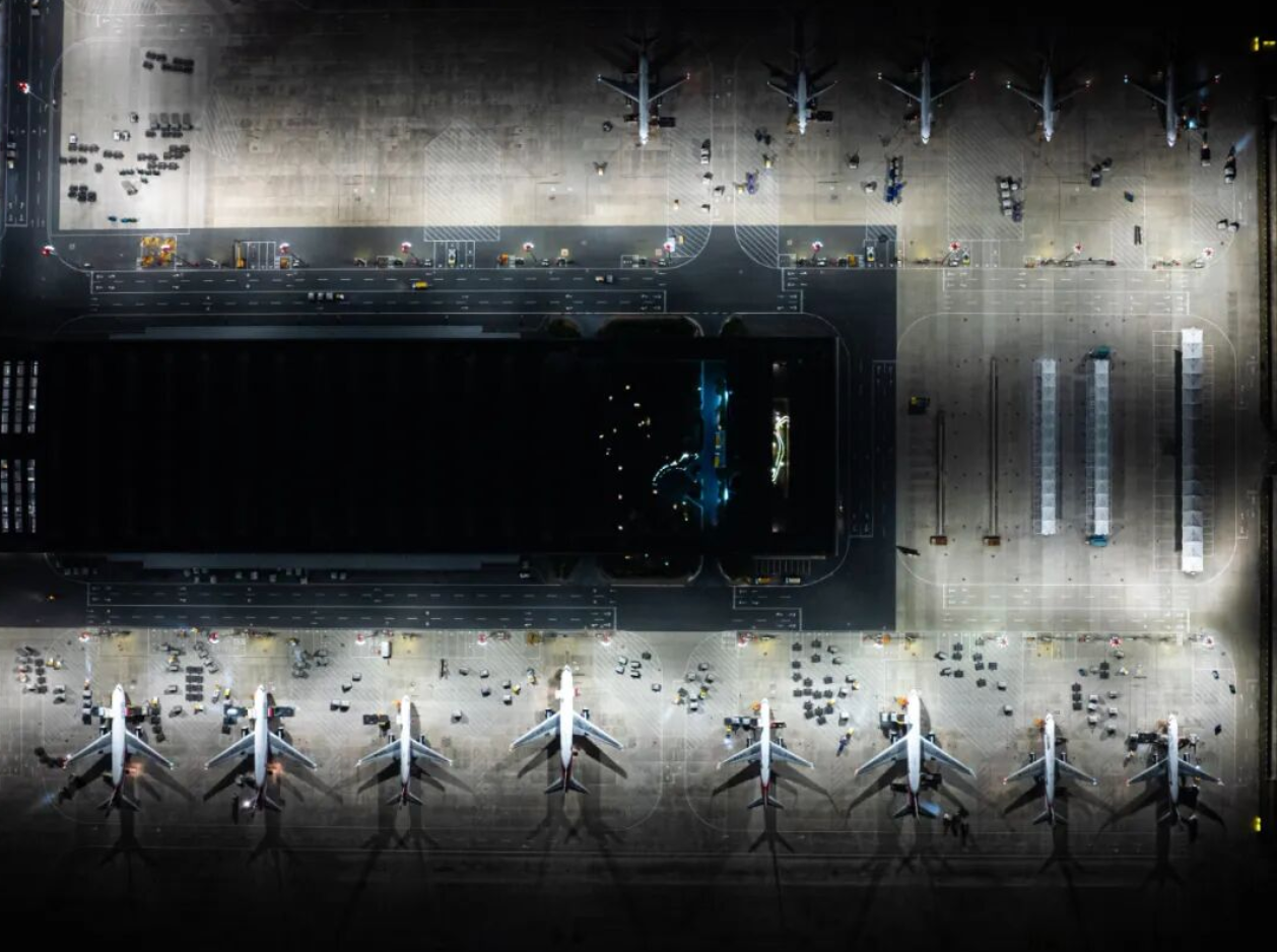 子夜时分,花湖机场灯火通明。新华社记者肖艺九 摄