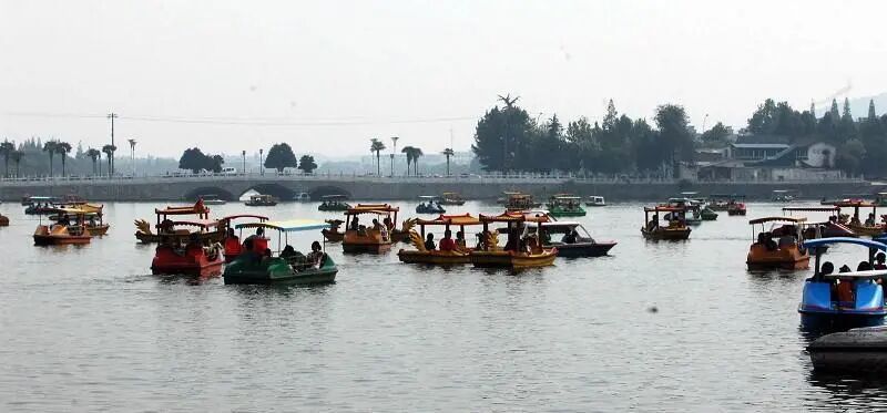 2008年“十一”期间,市民在襄阳护城河上游玩。 记者安富斌摄