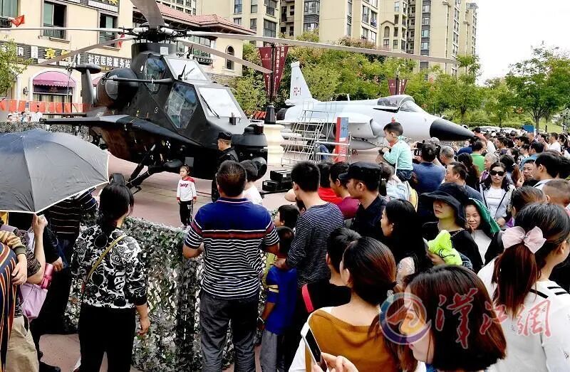 2018年10月1日,市民在高新区富康大道参观我市首届国防兵器展,欢庆国庆佳节。