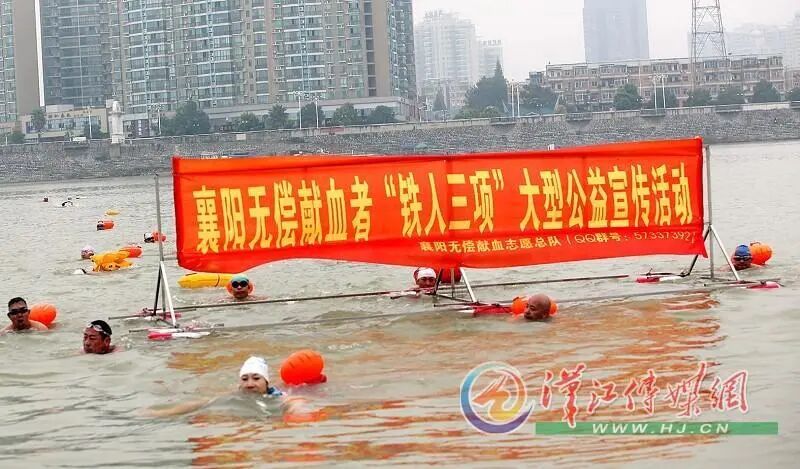 2011年10月1日,襄阳无偿献血志愿者总队的25名队员,举行“铁人三项”活动。记者李云飞摄