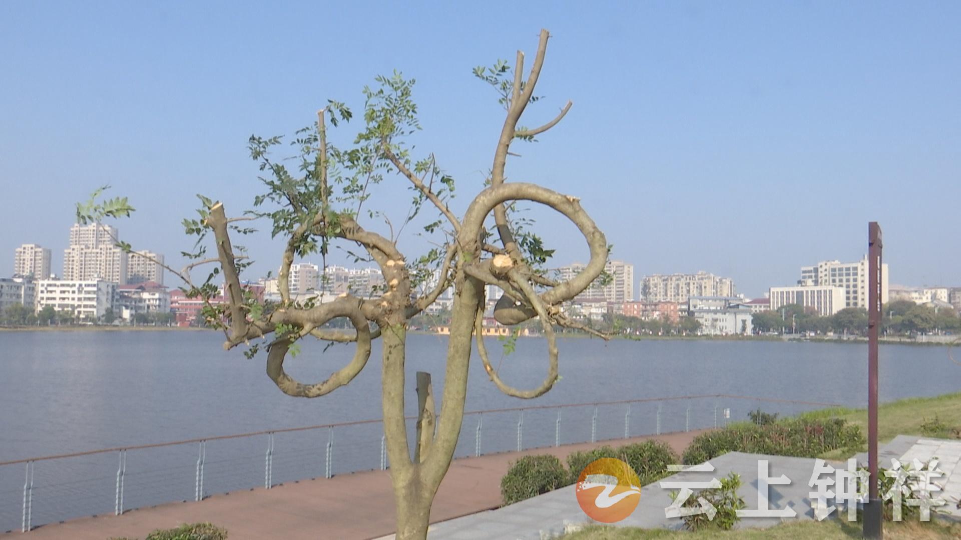 徐从勤捐赠的这批对节白腊树,树高在两米左右,树型被精心设计成五环形状,在宫塘湖公园迎接游客的到来。