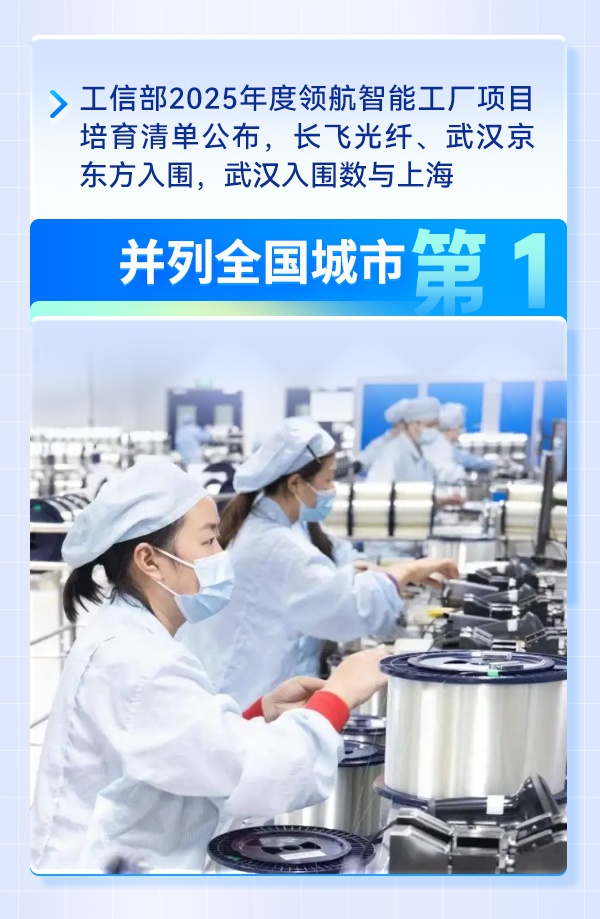 数字化转型也没掉队,成绩照样能打!赛迪研究院发布的《中国新型显示产业高质量发展指数(2025)》中,武汉位列第5。长飞光纤、武汉京东方入围工信部2025年度领航智能工厂项目培育清单,入围数与上海并列全国城市第1。武汉制造业的“智慧基因”越来越强。