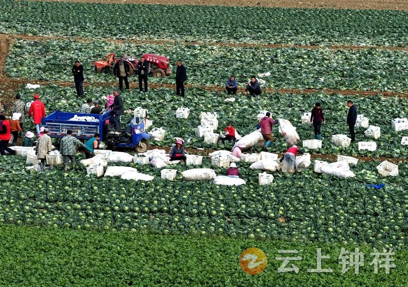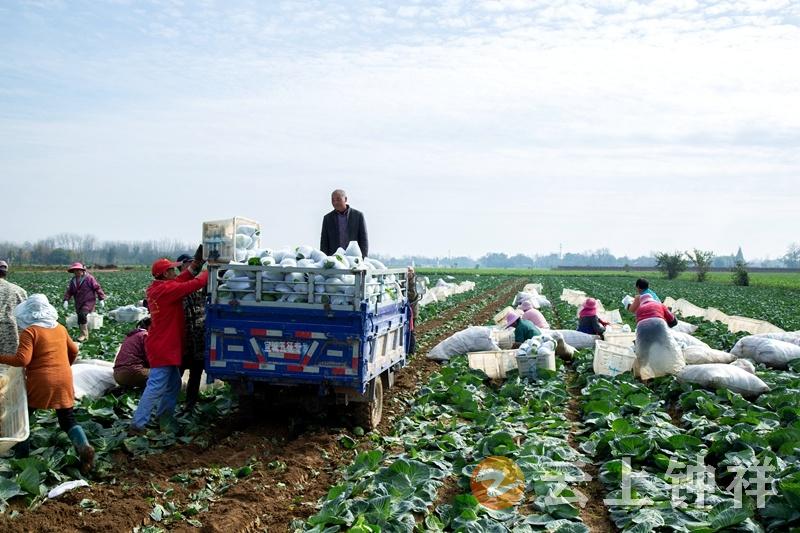 11月20日,钟祥市丰乐镇前锋村的包菜基地里,连片的甘蓝菜裹着翠绿的外衣“铺”满田间,村民们正忙着将刚采收的包菜分拣、装袋、搬运上车,蓝白相间的农用三轮车穿梭其间,丰收的喧闹声里裹着笑意——这是该村蔬菜产业“产销两旺”的生动写照。