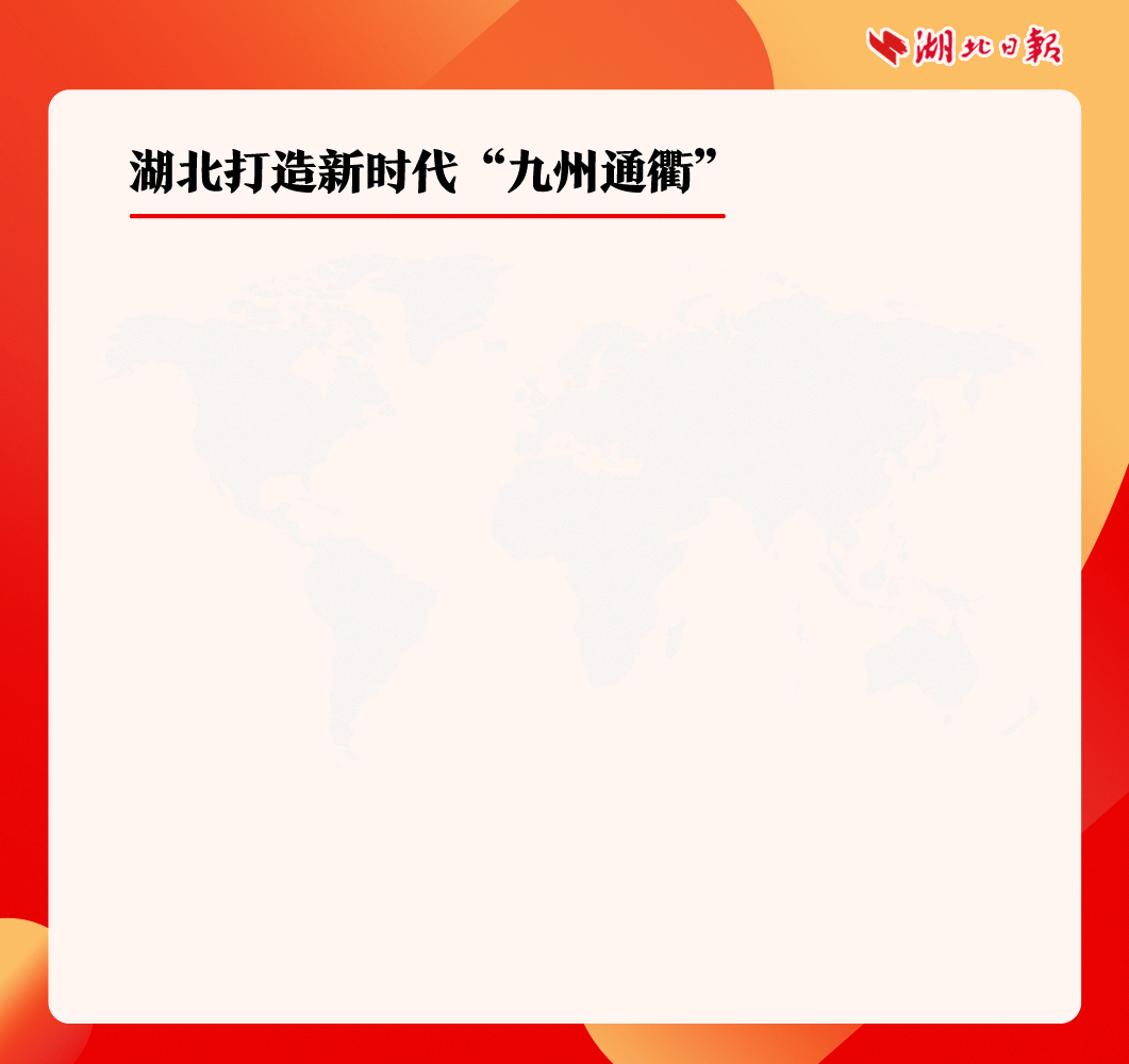 推进枢纽提能战略,湖北打造新时代的“九州通衢”“九州通商”“九州通融”,重塑内陆开放格局。