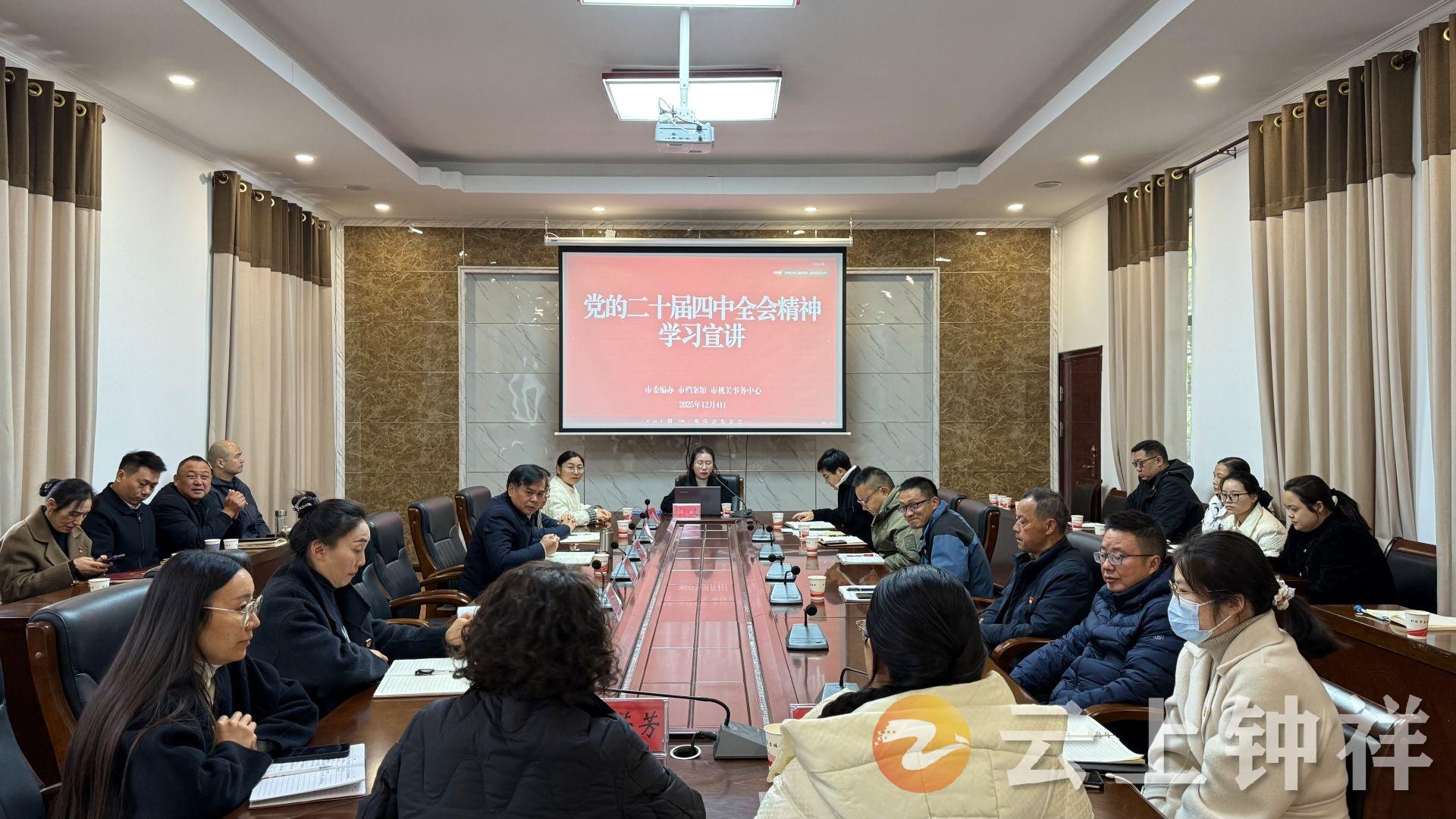 12月4日,市人大常委会党组书记、主任王小庆主持召开市八届人大常委会党组中心理论学习暨党的二十届四中全会精神专题研讨会。市人大常委会副主任陈献生、陈琳、张淑、易敬军参加会议并分别就学习全会精神作交流发言。