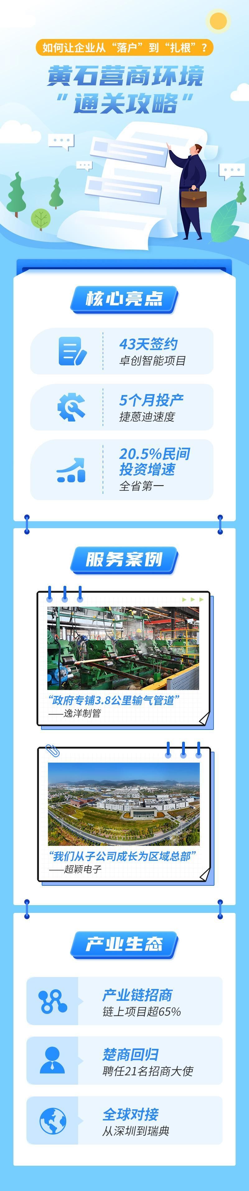 市政府主要领导每周召开专题协调会,形成“单月调度、双月排名、季度通报、全年结账”的浓厚氛围;建立健全从项目预审、评估到签约、开工、投产的“全周期”跟踪服务机制,保障土地、能耗、金融等关键要素精准供给;常态化开展“双千”等活动,面对面为企业纾难解困,全力保障项目招得来、落得下、发展好……一系列“硬举措”打造“软环境”,让黄石不断厚植营商环境沃土,激活发展动能。