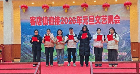 12月31日,客店镇在中华葛文化风情园举办迎元旦文艺活动,镇机关干部以歌曲、诗朗诵等形式,喜迎2026年元旦,展现昂扬向上的精神风貌。