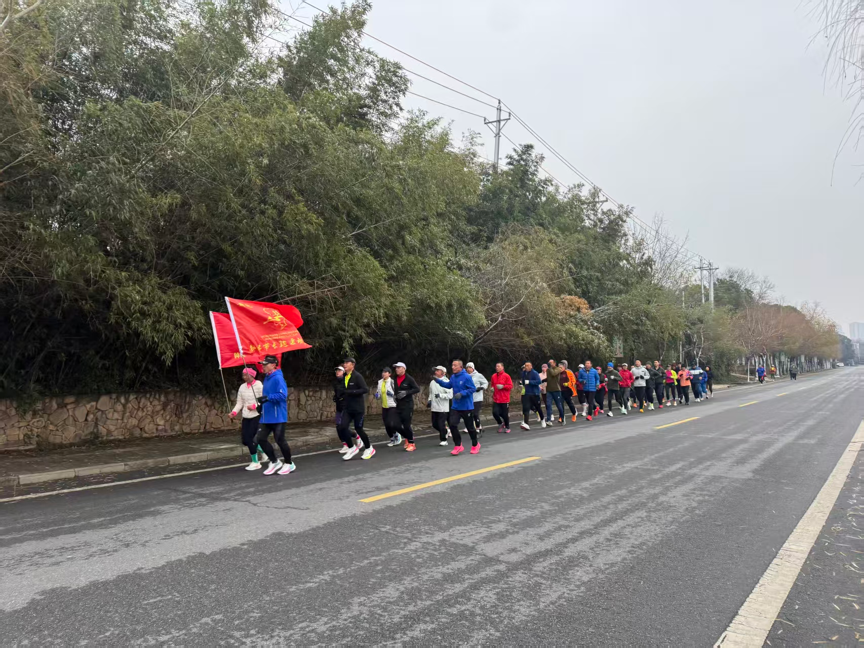 清晨7时30分,迎着凛冽寒风,跑友们如约相聚莫愁湖畔,即将开启逆时针绕行三圈半的奔跑征程。尽管前一日大雪纷飞,路面湿滑,但丝毫没有减退大家的参赛热情。队伍之中,既有身经百战、常年征战马拉松赛场的资深跑者,也有勇于突破自我、首次挑战超长距离的健身爱好者,不同年龄、不同身份的奔跑者因热爱集结,用脚步诠释运动的魅力。为确保活动安全有序推进,协会提前谋划、周密部署,在赛道沿途科学布设多个补给站点,为跑友们提供热水、功能饮料及能量食品;同时配备专业急救人员与志愿者全程随行护航,为这场奔跑盛宴筑牢坚实的安全屏障。