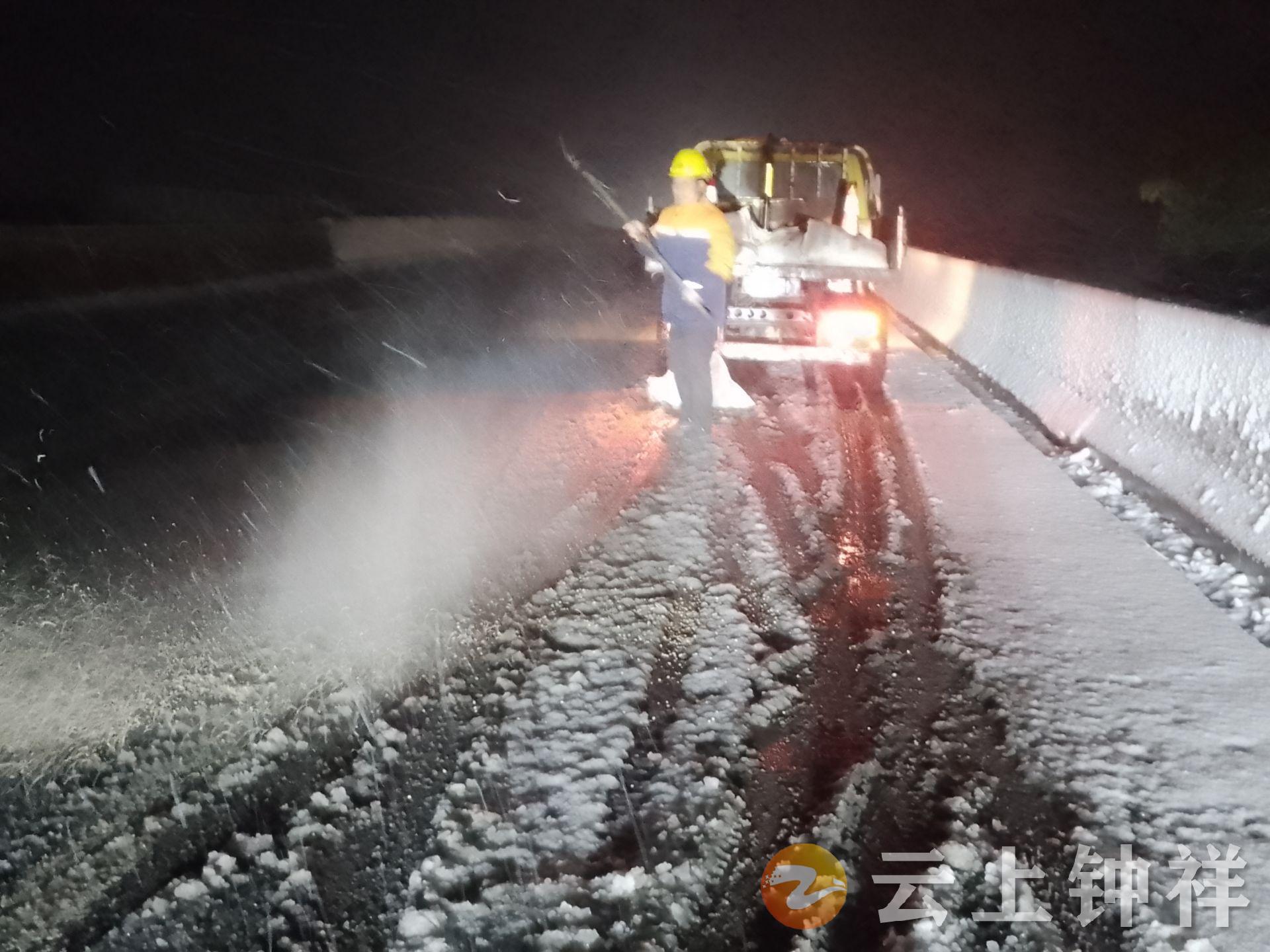 12月31日跨年夜,大范围降温雨雪天气来袭,钟祥公路部门迅速启动应急预案,实行国省干线公路包保,采取“人工+机械”除雪作业模式,在急弯陡坡、桥梁、长下坡等易结冰路段预置融雪剂、防滑料等物资,配齐挖机、装载机等抢险设备。同时,联合属地政府、交警部门严格落实24小时值班值守,动态优化除雪方案,全力守护道路安全。