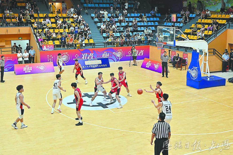 更令人惊喜的是,赛事IP本身催生本土体育产业从无到有、由弱变强。准者体育负责人透露,印有“恩BA”标识的专属篮球销量突破5000个,定制球服热销超过8万套,全年赛事相关总收益突破千万元。本土创业青年姚竞创办的“星耀体育”,凭借服务恩BA迅速成长,团队从3人扩展到30余人,业务范围从赛事执行延伸到体育培训、场馆运营,成为“体育+”新经济的一颗新星。