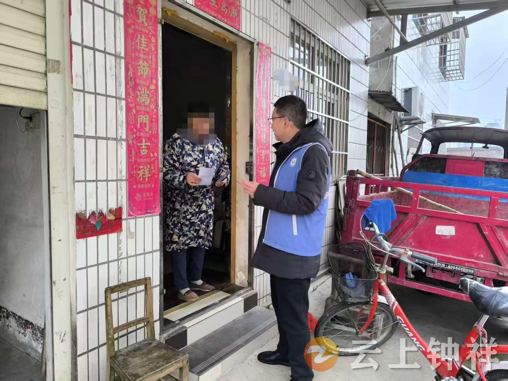 “吴大爷,已是小寒节气,要穿暖点。”“王大妈,年货置办得差不多了吧!”“陈叔,用电用气用火一定要注意安全啊!”……1月6日,钟祥市皇庄街道皇庄社区民政专干李梅正在辖区组织社区工作人员走访困难群体居民。