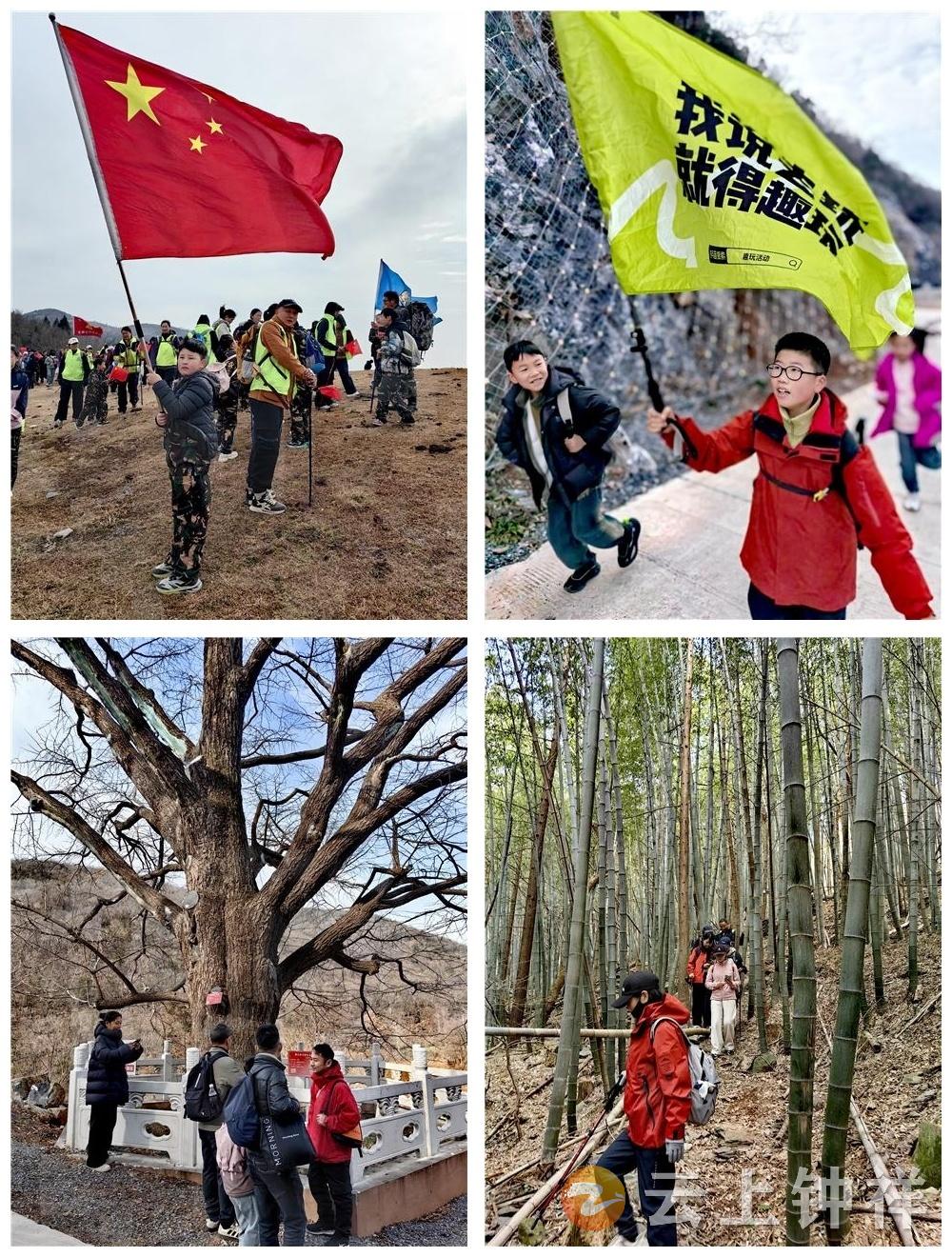 午餐后,主题活动仪式在大平台举行。现场悬挂着徒步节主题横幅,五颜六色的群旗、彩旗与鲜艳的五星红旗迎风招展。仪式在高亢嘹亮的《歌唱祖国》歌声中启幕。随后,全场挥旗齐喊“欢迎大家来探寻神秘钟祥,帝王之乡!”等口号,彰显钟祥人民的热情与自豪;兔子舞、《萨日朗》广场舞表演展现出了参与者的青春活力,散鹰部落小队员带来的“胜利凯歌”动力圈、巨人的脚步等趣味游戏,诠释了攻坚克难、勇攀高峰的奋进精神,现场人声鼎沸、气氛热烈。仪式结束后,徒步队伍继续攀登牛鼻山、穿行楠竹洼、漫步杉树林,完成全程十余公里的徒步。