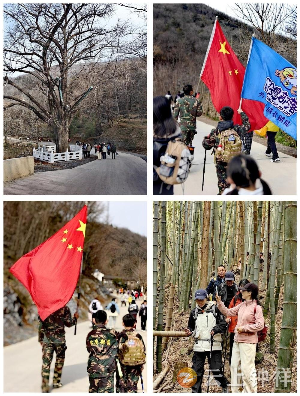 活动当日天气晴好、气温宜人,10余台旅游大巴沿盘山公路蜿蜒前行,成为山间一道壮观风景线。徒步队伍构成多元,既有资深户外爱好者,也有首次体验的新成员,不乏携带幼儿亲近自然的家长和精神矍铄的老年队友。其中,数十名身着迷彩服、手持小国旗的散鹰部落小队员格外亮眼,他们活力四射地穿梭于队伍中,为活动增添了蓬勃朝气。