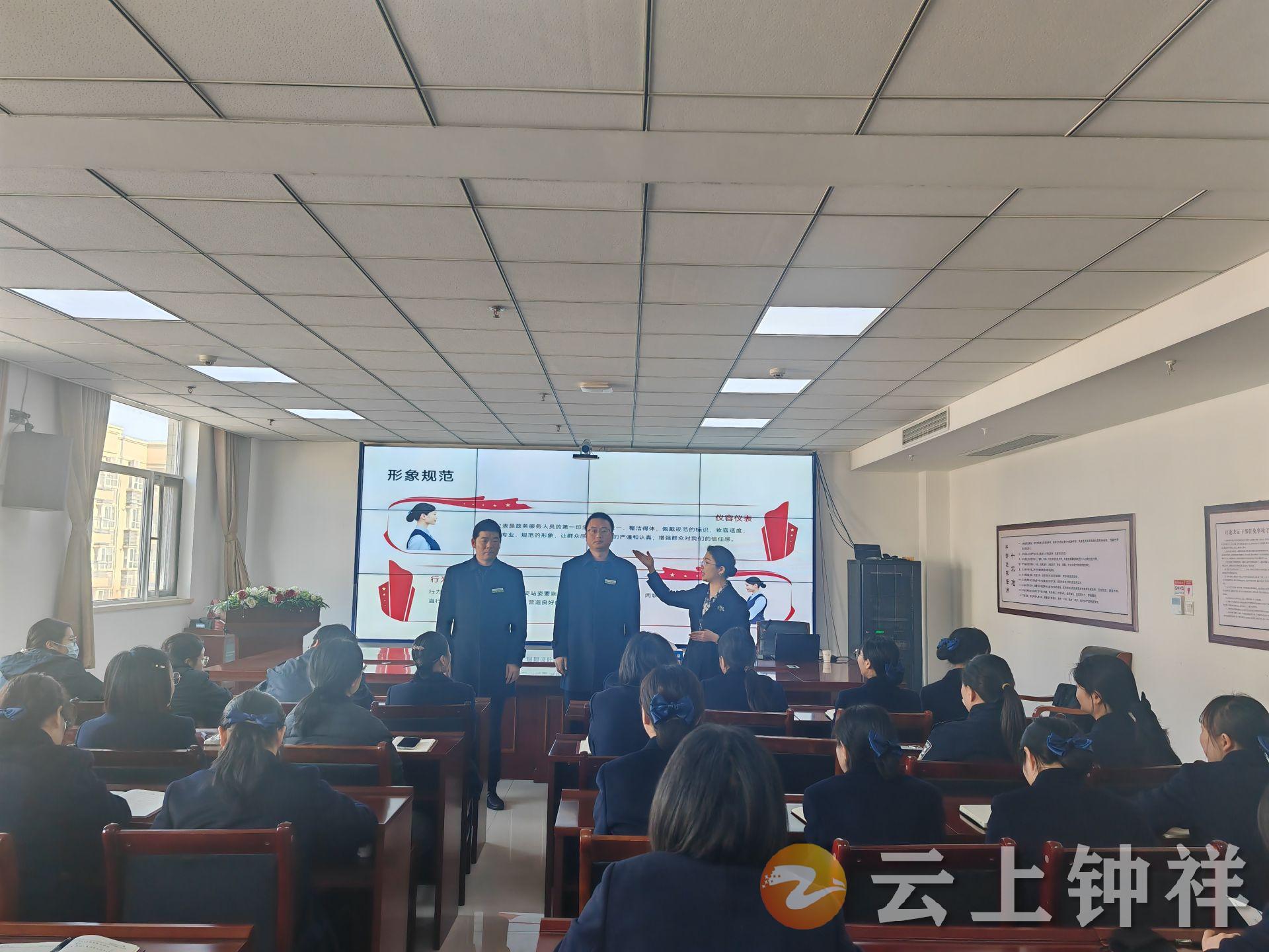 1月13日,钟祥市行政审批局组织大厅全体窗口人员及导服人员开展政务服务意识专题培训,旨在规范政务服务行为、提升大厅工作人员综合素养与务实能力,展现窗口亲切专业高效形象,持续优化政务服务环境。