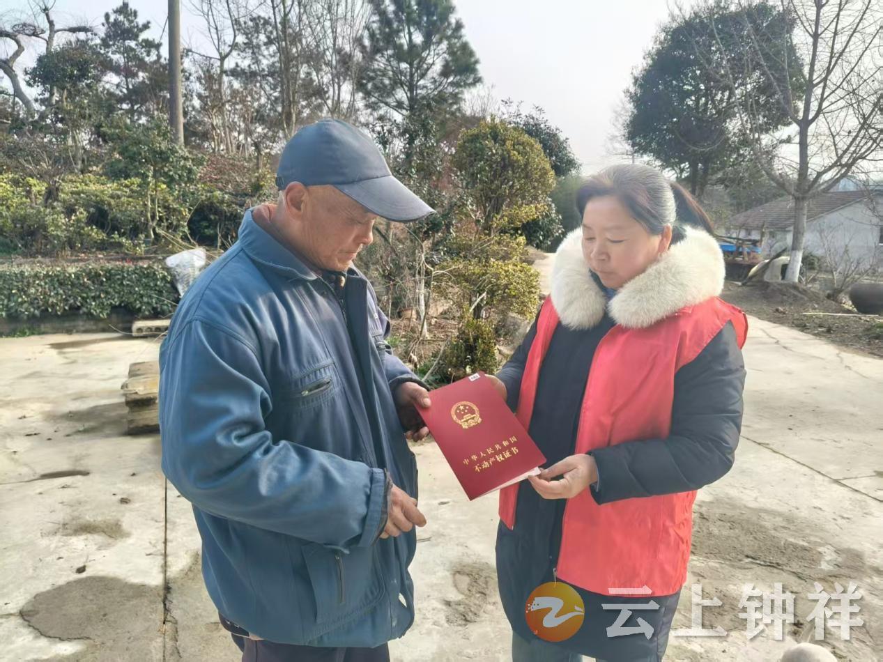 近日,张集镇响水潭村网格员化身“便民跑腿员”,为村民代领并上门发放房屋产权证,实现群众“足不出村领证”,切实打通了服务群众“最后一公里”。
