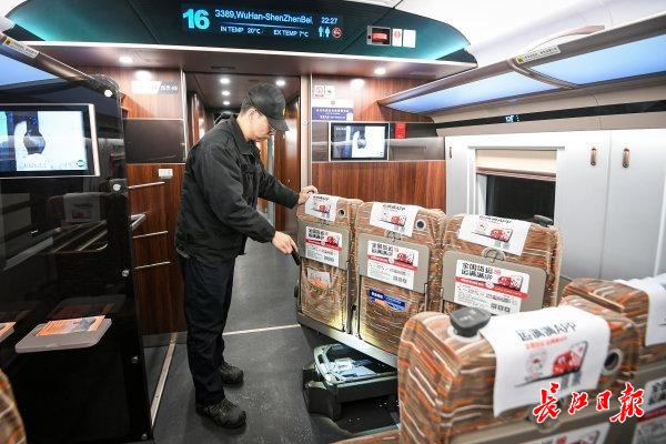 1日凌晨,“90后”地勤机械师李文举手持摄像手电,在车厢里缓步行进,逐一检查灯管、座椅、卫生间和电茶炉的技术状态,不时俯身对座椅小桌板螺栓进行紧固。随后,他又与同事沿着检修平台,目光如扫描仪般在车底、转向架、制动系统间反复巡视。“春运期间,我们每晚工作12个小时,负责3到4组动车组的检查,行走超3万步。”李文举说,“微信步数榜,基本被我们‘承包’了。”