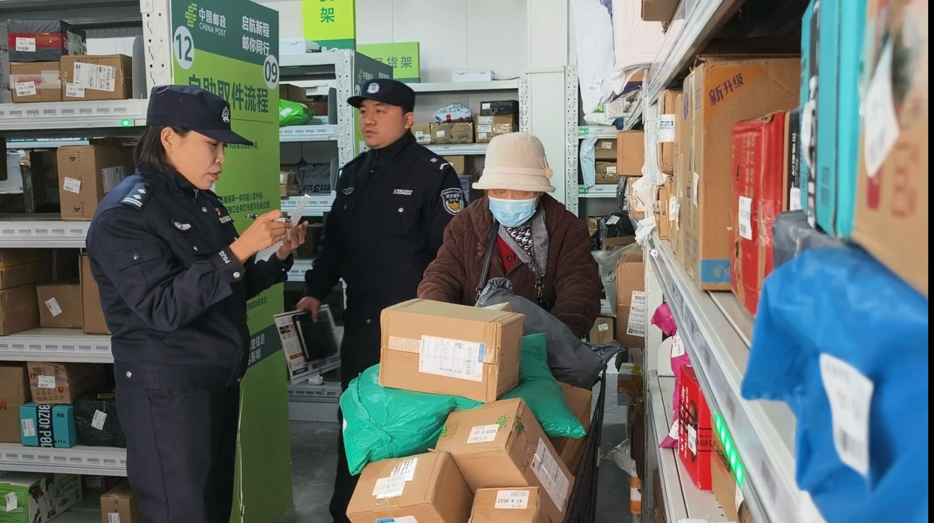 从宋显新老人家中出来,邵楠路过社区物流点时,远远就看见80多岁的独居老人张明芝正踮着脚,试图从货架上取下一个沉甸甸的纸箱。“张阿姨,您怎么自己来取快递呀,没叫上我!”邵楠快步上前,一把接过纸箱稳稳抱在怀里。张明芝转过身笑着说:“想着趁天气好多活动活动,没想到这箱子比想象中沉。”