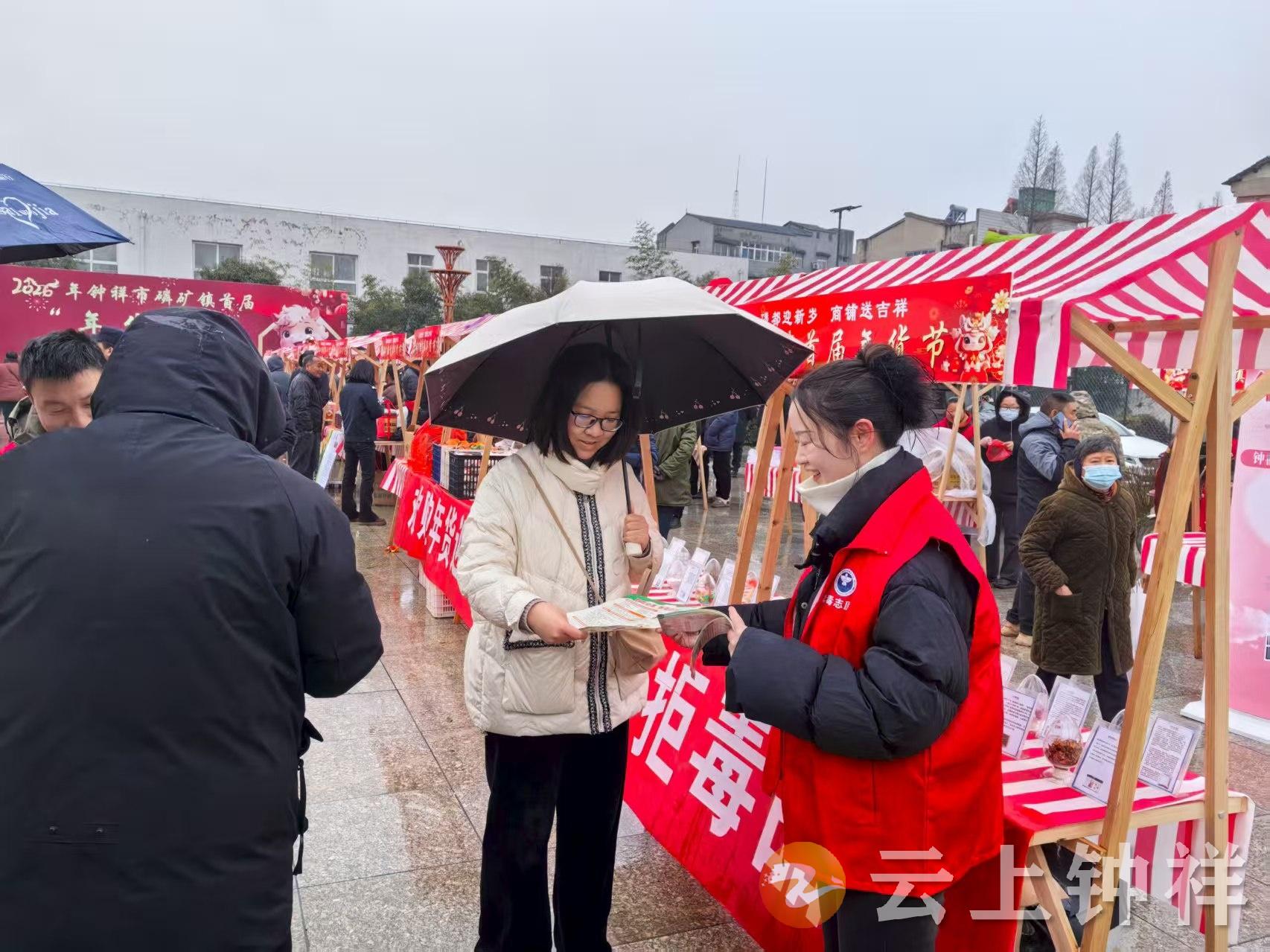 2月9日,磷矿镇社区戒毒康复中心走进该镇首届“年货节”现场,开展“欢购年货迎新春、珍爱生命拒毒品、共建平安磷矿镇”主题禁毒宣传活动,将禁毒知识融入节日氛围,守护群众平安过节。