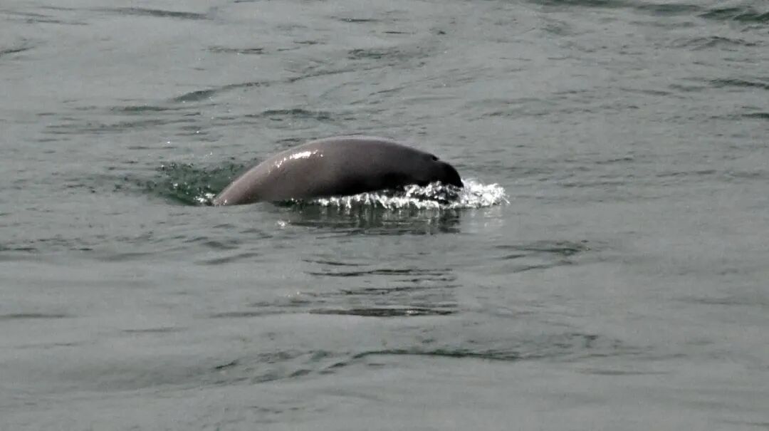长江宜昌段江面上,成群江豚频繁跃出水面,逐浪嬉戏、憨态可掬,灵动身影与一江碧水相映成趣(刘曙松|摄)