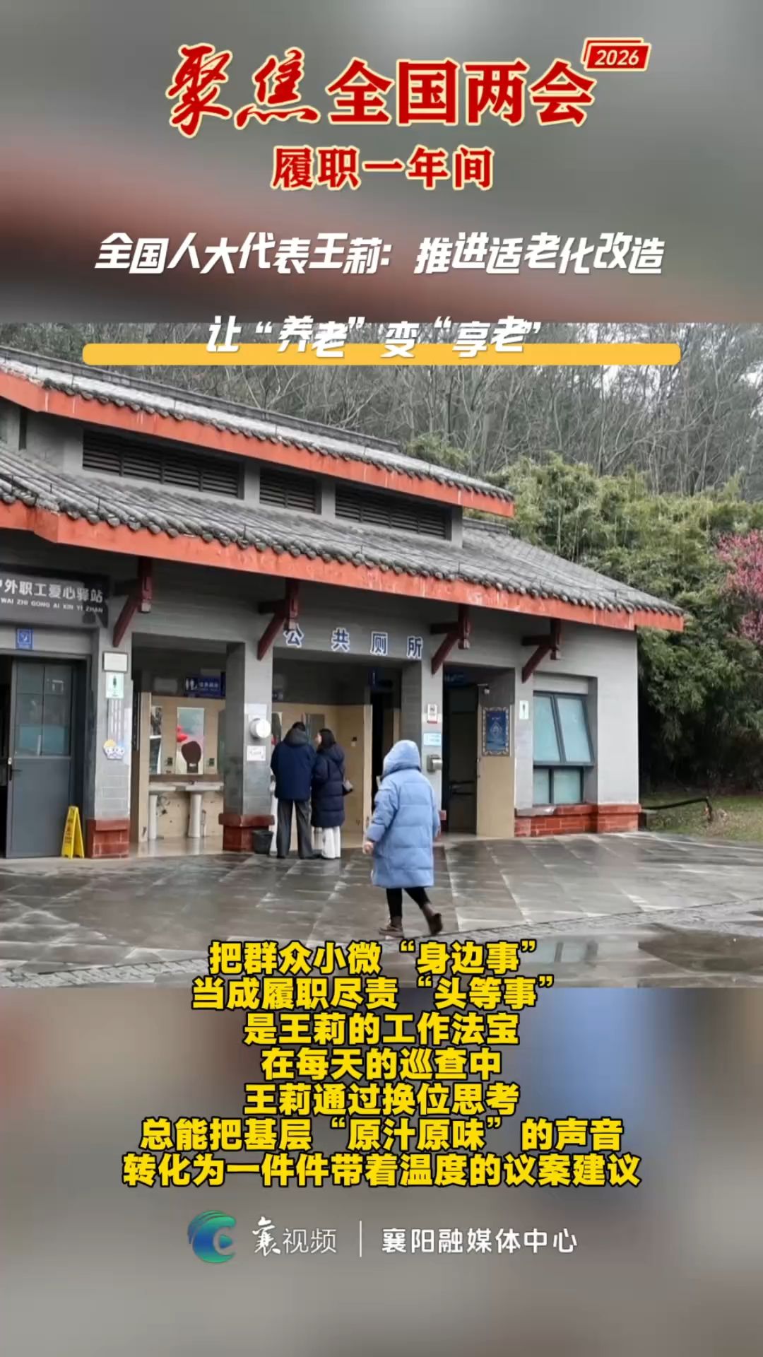 “它这个地方,一般有个护理台,这个扶手也好,站着也可以扶,蹲到这起来也可以扶。”在襄城的大街小巷,全国人大代表、襄城公厕公司党支部书记王莉的身影是居民们熟悉的身影。把群众小微"身边事"当成履职尽责“头等事”,是王莉的工作法宝。在每天的巡查中,王莉通过换位思考,总能把基层“原汁原味”的声音,转化为一件件带着温度的议案建议。