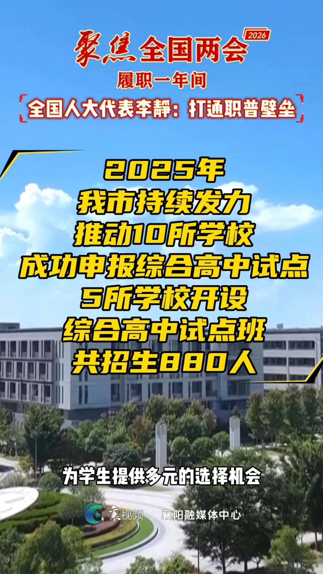 2025年,襄阳市持续发力推动10所学校成功申报综合高中试点,5所学校开设综合高中试点班,共招生880人。